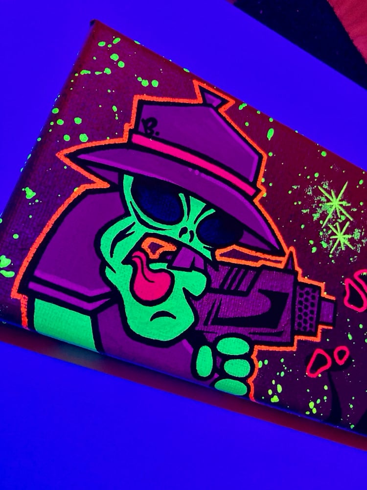 Original 1/1 painting on stretched canvas using spraypaints, fluro sprays, acrylics and gels.