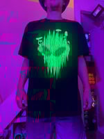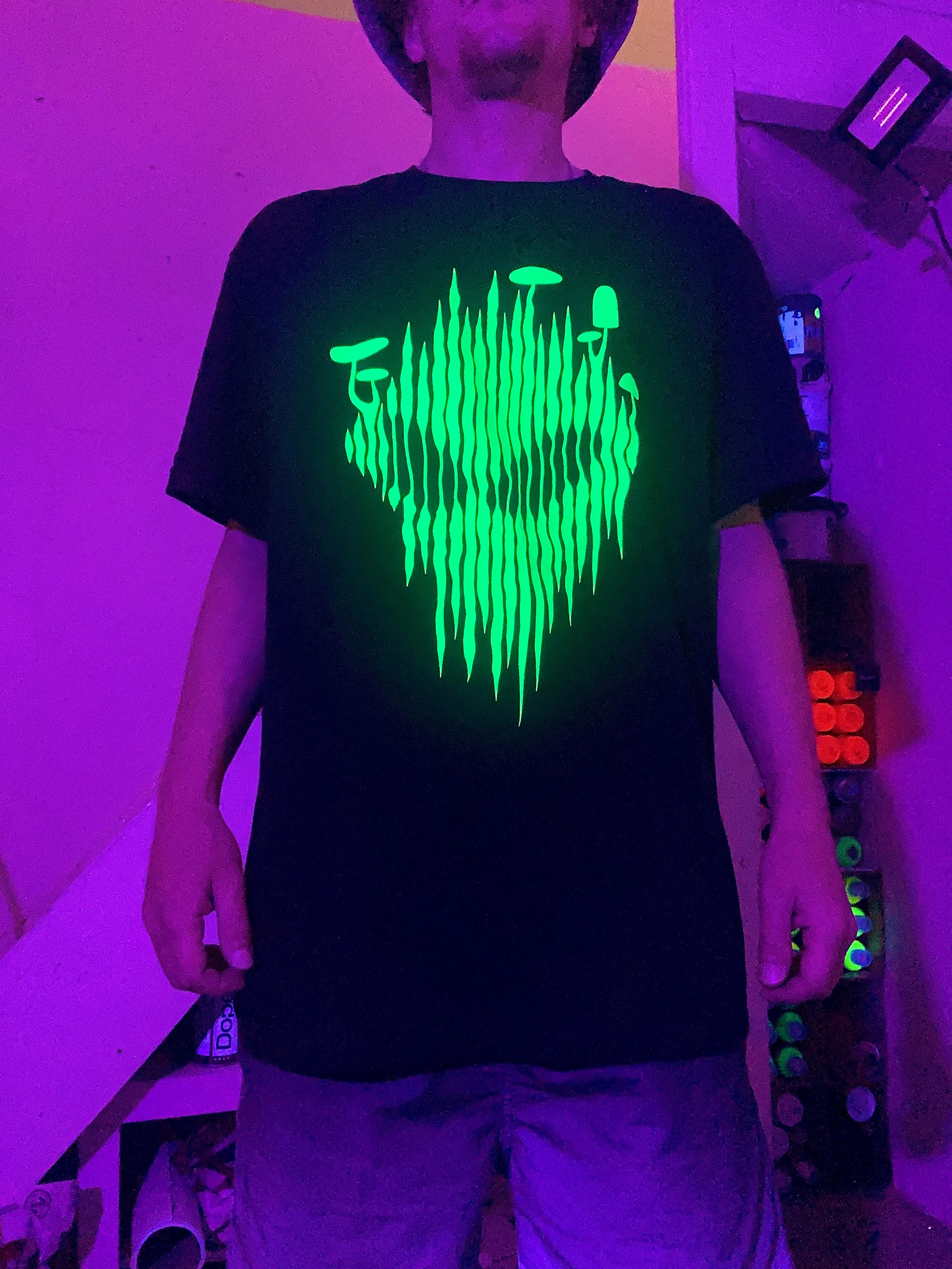 Hand screen printed front and back Gildan UV reactive tshirt.